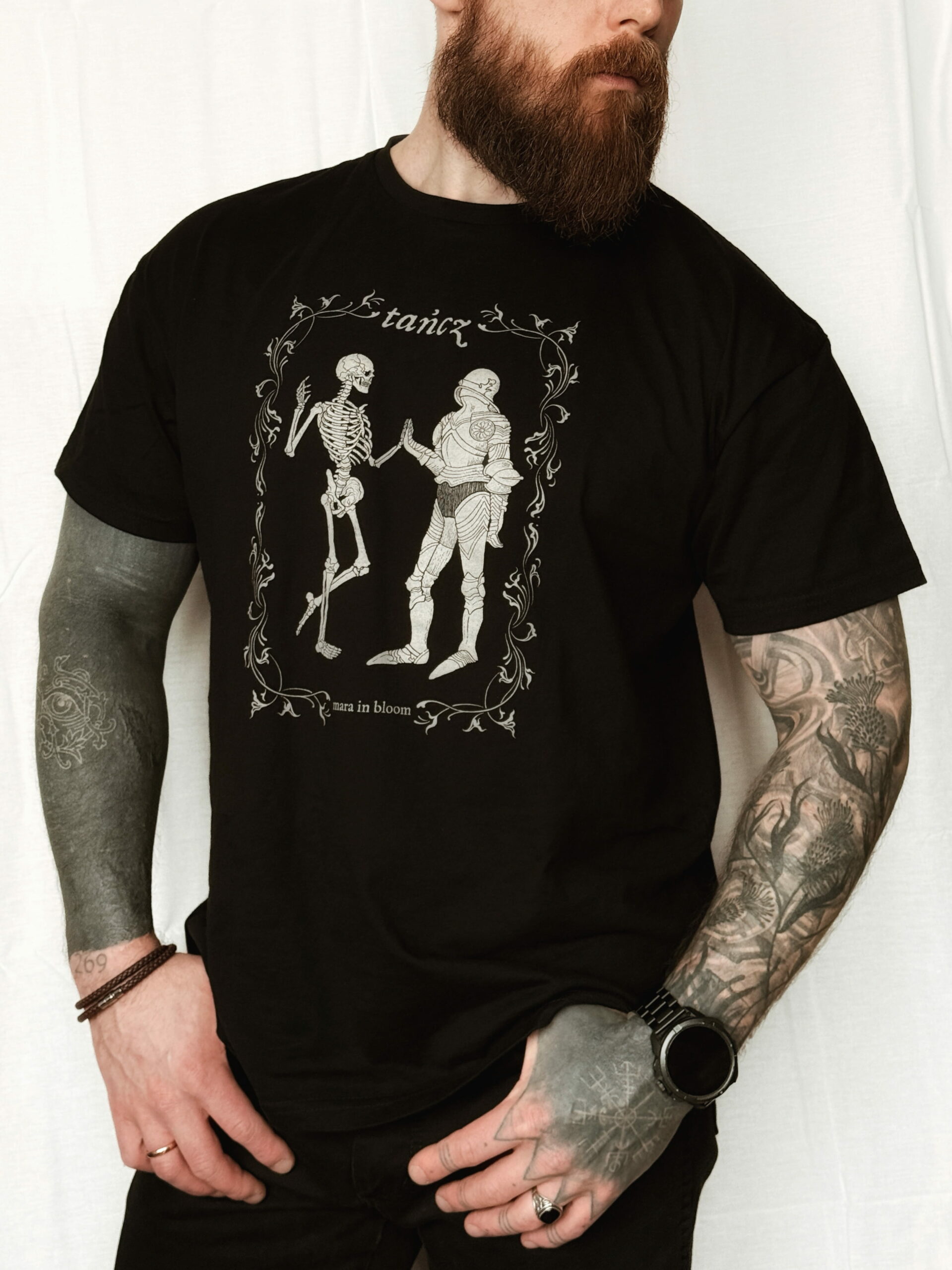 Koszulka Mara in Bloom z motywem dance macabre (taniec śmierci). 100% bawełna 200g, nadruk sitodruk, fason oversize. Rozmiary: S-XL.